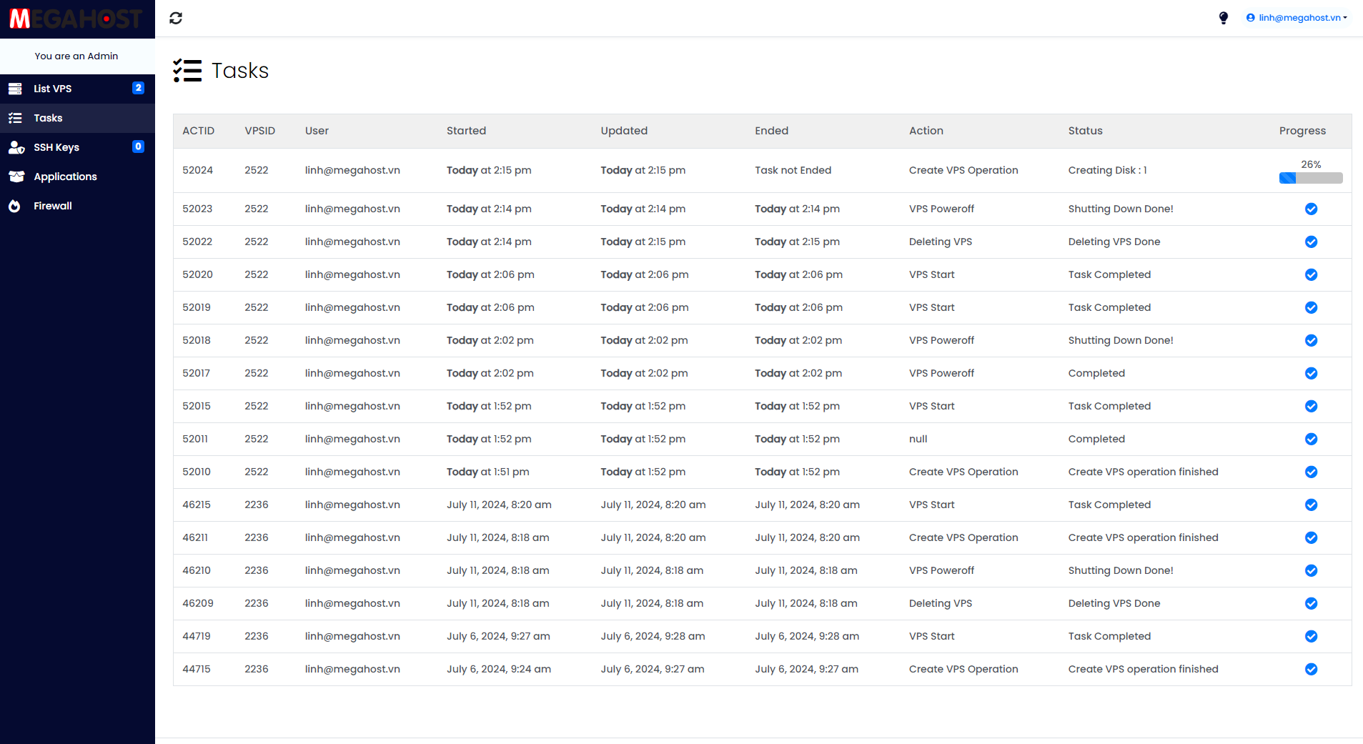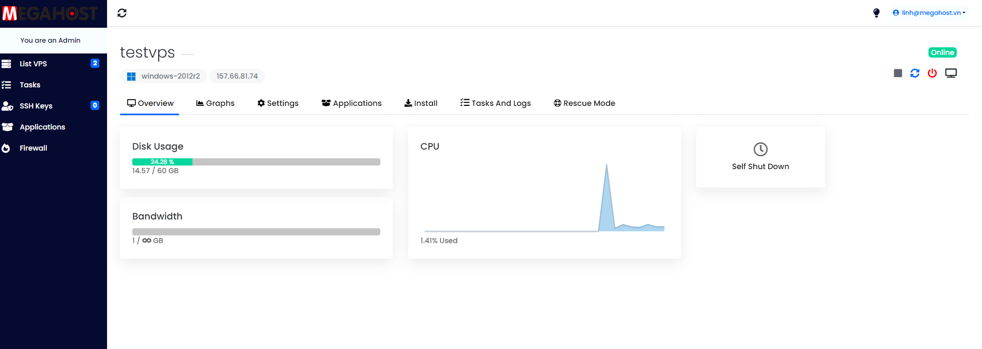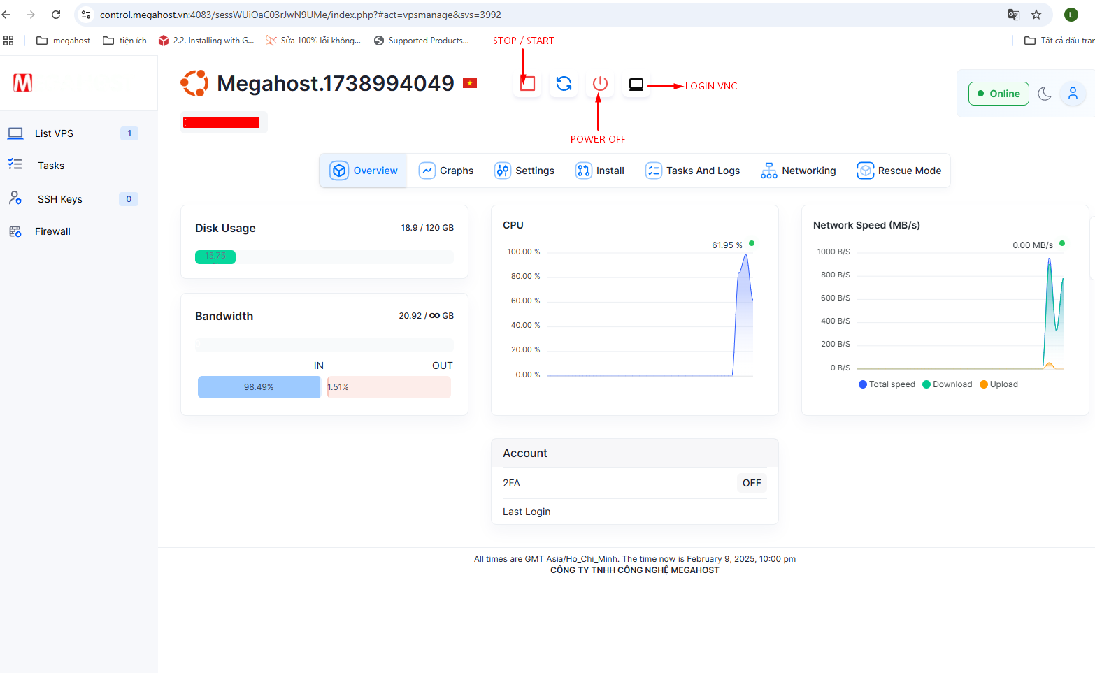 Hướng dẫn sử dụng VPS Control Panel Megahost