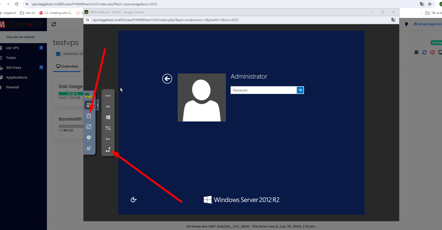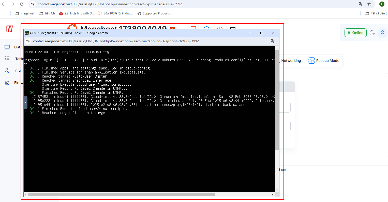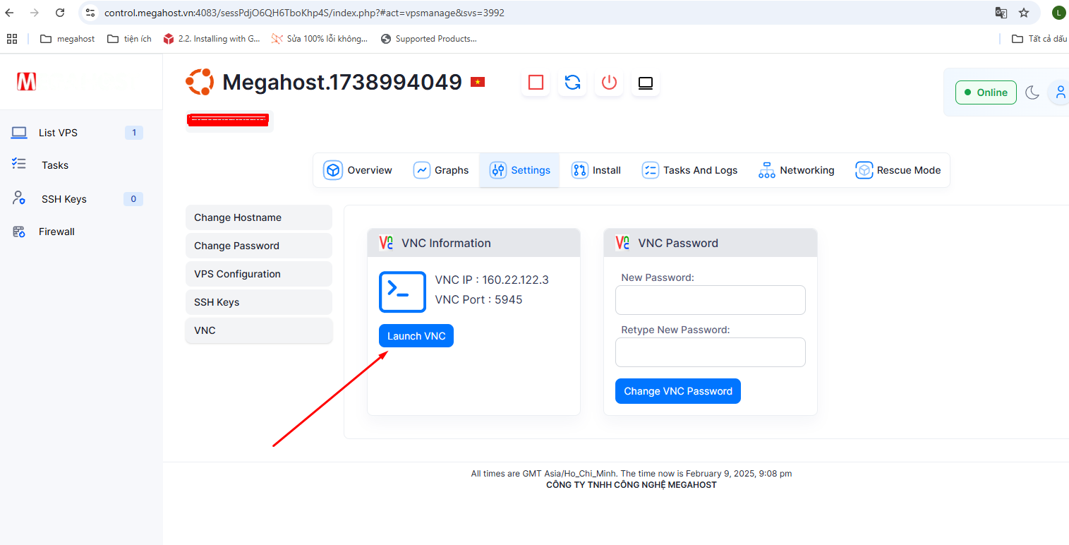 1. Đăng nhập vào VPS thông qua VNC (khi lỗi mất mạng , bị firewall chặn không thể truy cập , có thể thông qua VNC để khắc phục lỗi)
