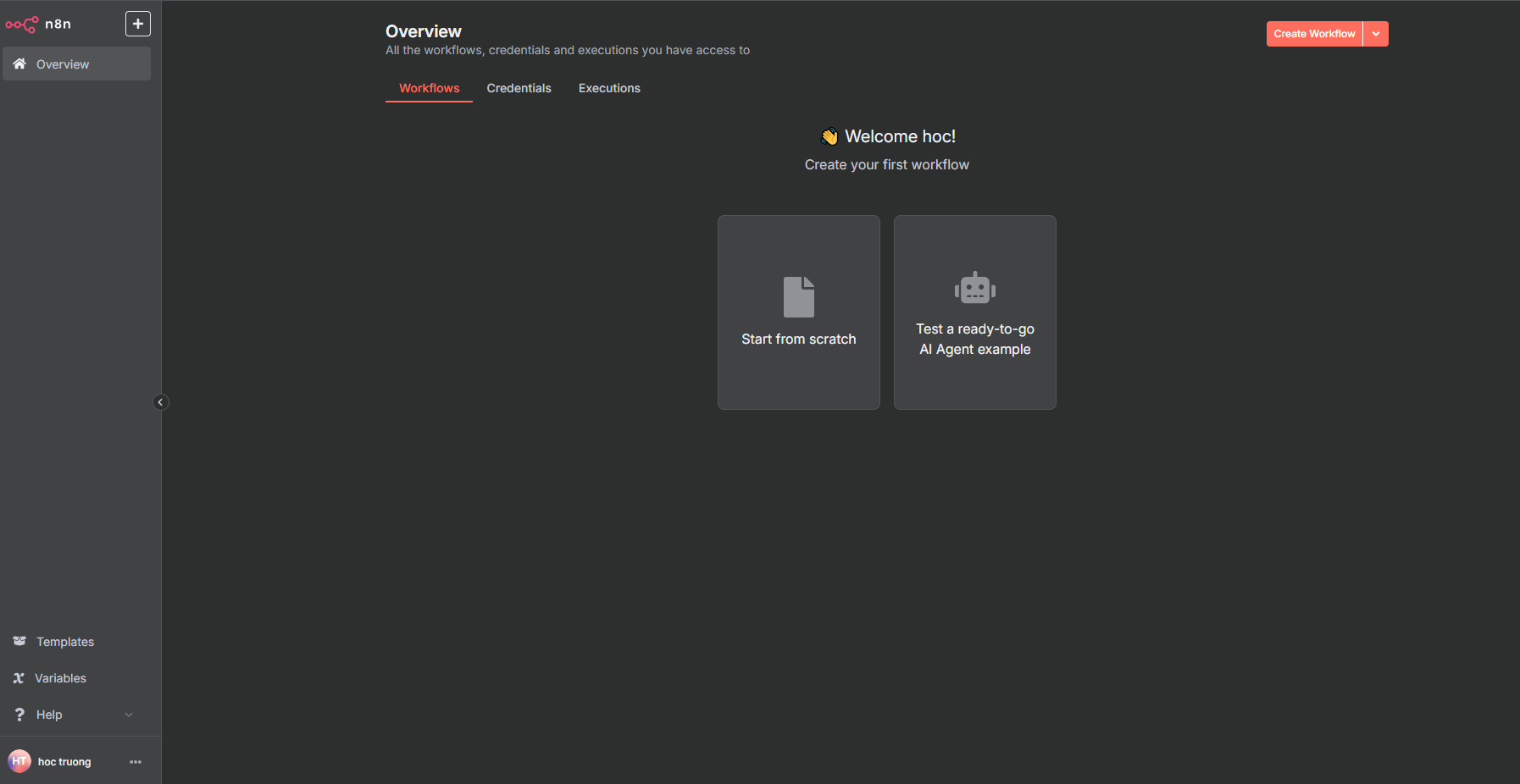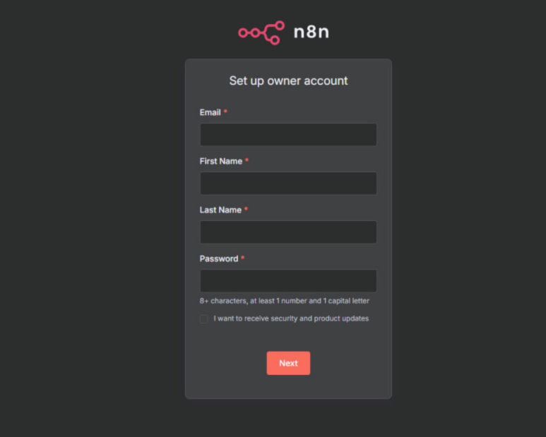 Ví dụ tên miền của bạn là “yourdomain.com” thì bạn truy cập n8n bằng link: https://n8n.yourdomain.com